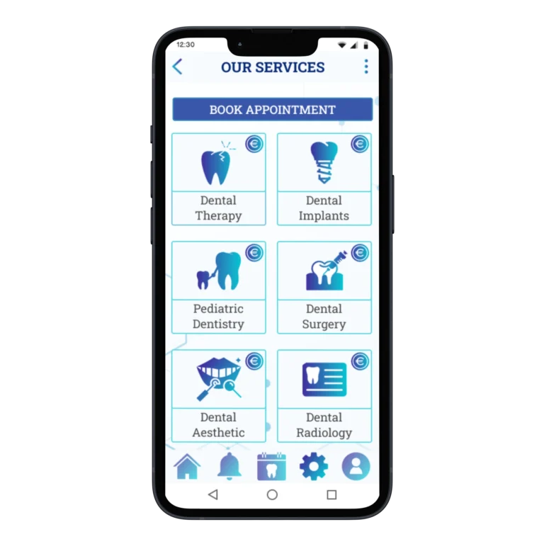 The icon set designed for this dental clinic app offers visual clarity, intuitive navigation, and a user-friendly experience.